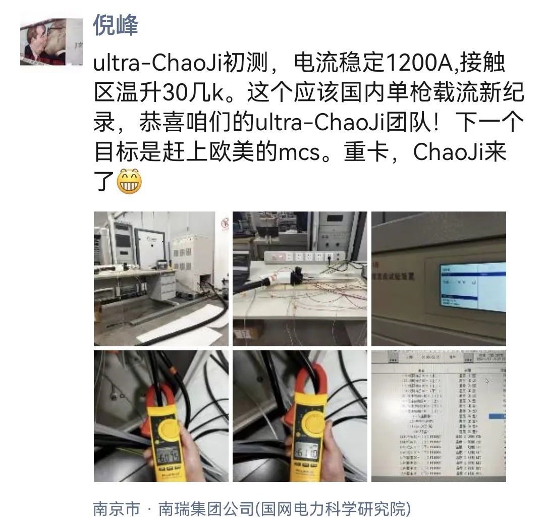 就在昨天, 我看到倪老師朋友圈里分享的已是“超級的超級(ultra ChaoJi)”了。電流達到1200A。我簡直不敢相信自己的眼睛!