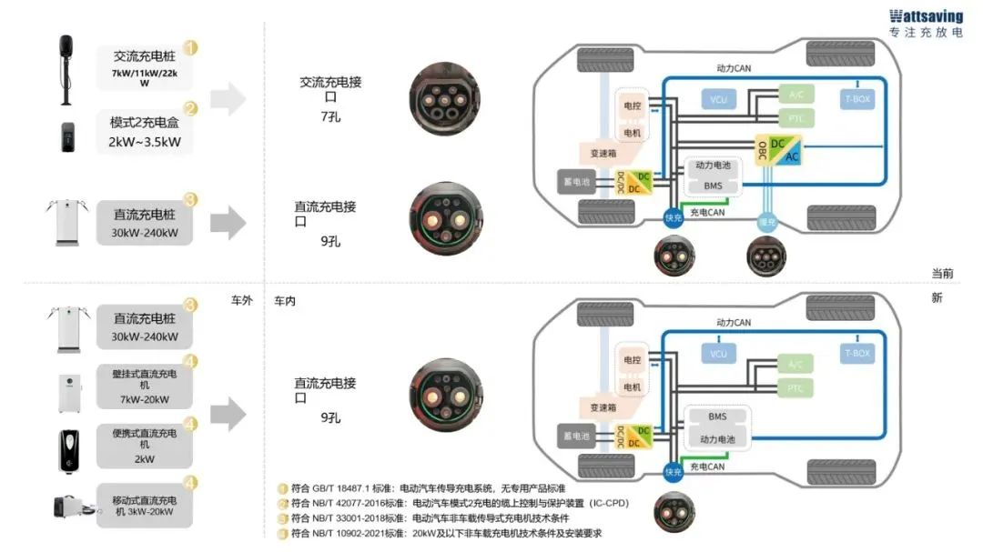 除了NACC,國(guó)標(biāo)、歐標(biāo)、美標(biāo)和日標(biāo),直流和充電充電是兩種槍頭,但是歐標(biāo)和美標(biāo)比國(guó)標(biāo)有一個(gè)重大的好處:直流和交流的槍座可以是一樣的,交流槍頭比直流小,插到槍座的其中一部分接口中去,就實(shí)現(xiàn)了交流充電。