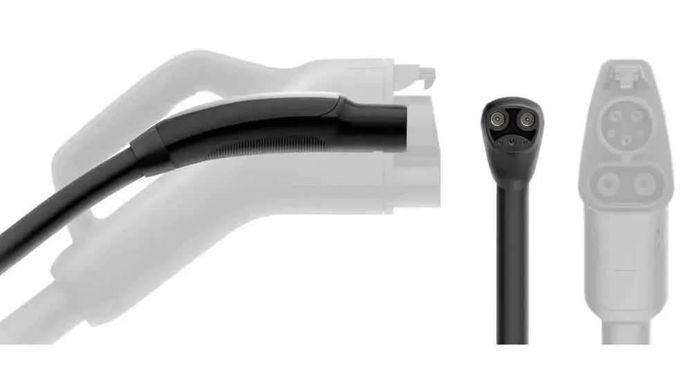 NACC標(biāo)準(zhǔn)的接口確實(shí)小巧誘人。如下圖所示,黑色的是NACC接口,直流和交流充電是一種槍?zhuān)冶菴CS小很多。