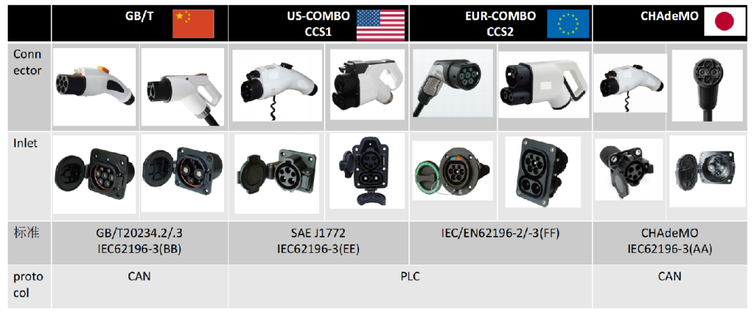 主要包含Type1(美國(guó)、加拿大、韓國(guó)、日本、澳大利亞等地)、Type2(歐盟)和中國(guó)標(biāo)準(zhǔn)三種;