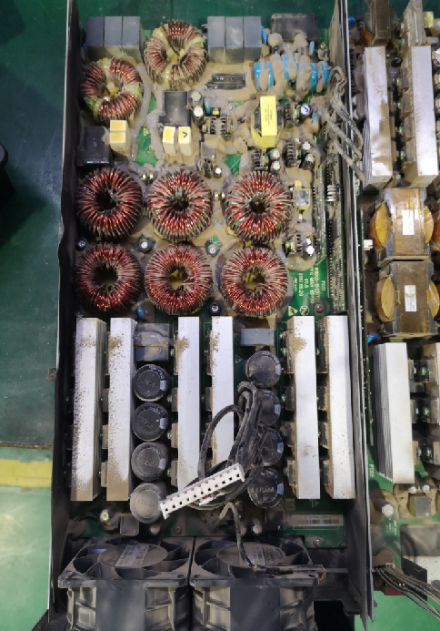 在一個沒有防護的充電樁里面灑滿75um的滑石粉,開機也能工作; 即使防塵棉上布滿灰塵,風道堵塞了,開機也會工作一陣子之后才會過溫保護。只要設計了45度角的百葉窗,水是淋不到機器內部的。IP54的第三方檢測是容易通過的,但是,通過了IP54檢驗的充電樁其實根本無法忍受“斜風急雨”的長期侵蝕。斜風急雨裹挾著潮濕的絮狀物,粘在風道入口的防塵棉上,很容易堵死風道。潮氣長期存在,高壓強電的安規距離下降。如果不能做到在每次斜風急雨之后立即清理風道,IP54等級充電樁的使用壽命大大下降。采用IP54的戶外充電樁,內部的充電模塊在半年后往往就是下面這個樣子了,如圖8所示。內部的灰塵,看上去已不堪入目。實物看上去后常有不適感。