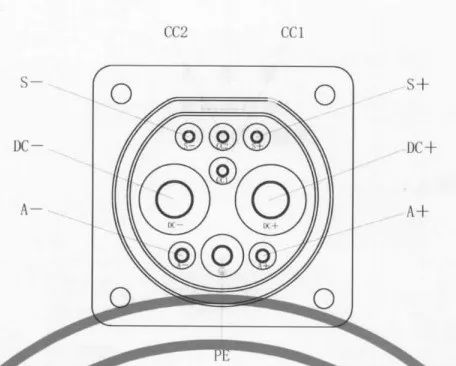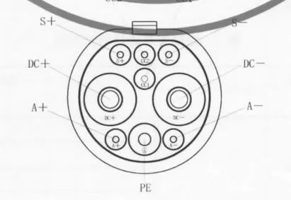 9孔槍頭的9個信號的定義見《GB/T 20234.3-2015,電動汽車傳導式充電用連接裝置 第3部分:直流充電接口》,如圖2示意。