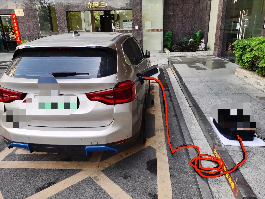 關于充電樁和車輛之間的線路,如圖6紅色標識,從充電樁的PG頭沿著槍線到車輛充電口。